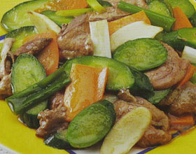 炝猪肝:'1.猪肝洗净切成小薄片,入开水中焯熟,投凉控干水分;冬笋、黄瓜均洗净切片。姜切丝。2.把猪肝、笋片、瓜片、姜丝、味精、精盐、花椒油放在一起,调匀...
