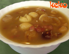 八宝莲子粥:'1.将莲子淘洗干净,去芯;青梅切成细丝;核桃仁用温水浸泡后,剥去外衣,切碎;蜜枣去核,切成细丁。2.糯米加水煮成稀粥,再加入其他原料,以白糖调味...    详细介绍