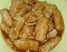 炒鸡米:'1.淀粉(10克)放碗内加水调出湿淀粉(20克)备用;2.葱、姜切末待用;3.将鸡脯肉剔去筋膜,切成0.4厘米见方的肉末放入碗内,加蛋清、黄酒、精盐、味...    详细介绍